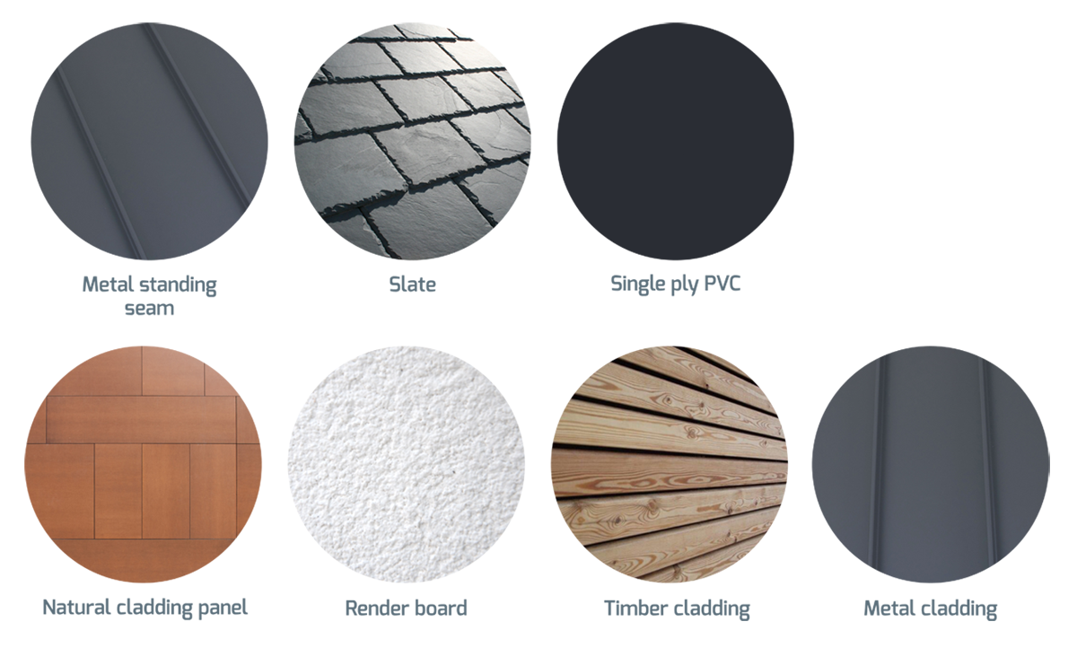 A number of different options are available for the walls and roof to make your home truly yours. Perhaps your walls may be a durable render board, metal cladding, stylish timber or a natural cladding panel solution, available in a variety of finishes and colours – or the roof could be a metal standing seam design, or traditional slate or single-ply membrane? All of these high-quality materials are all designed to fit perfectly to the Neat Living Flex home structure.