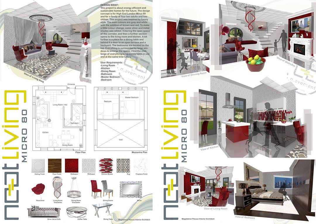 “My design is suited well for a family of four. It has all the essential areas they would need plus the extra storage space and adaptable furniture. The design kept to the brief, it is luxurious, elegant and diverse creating a relaxing atmosphere.”