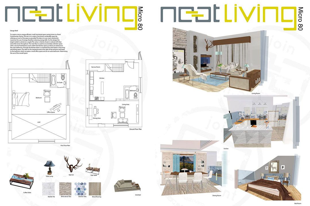 For 2018, the Designers of Tomorrow have responded to a challenging design brief by developing concepts for either a rural Scandinavian theme or an upmarket London theme, based on the Neat Living micro 80, an 80m2 home.